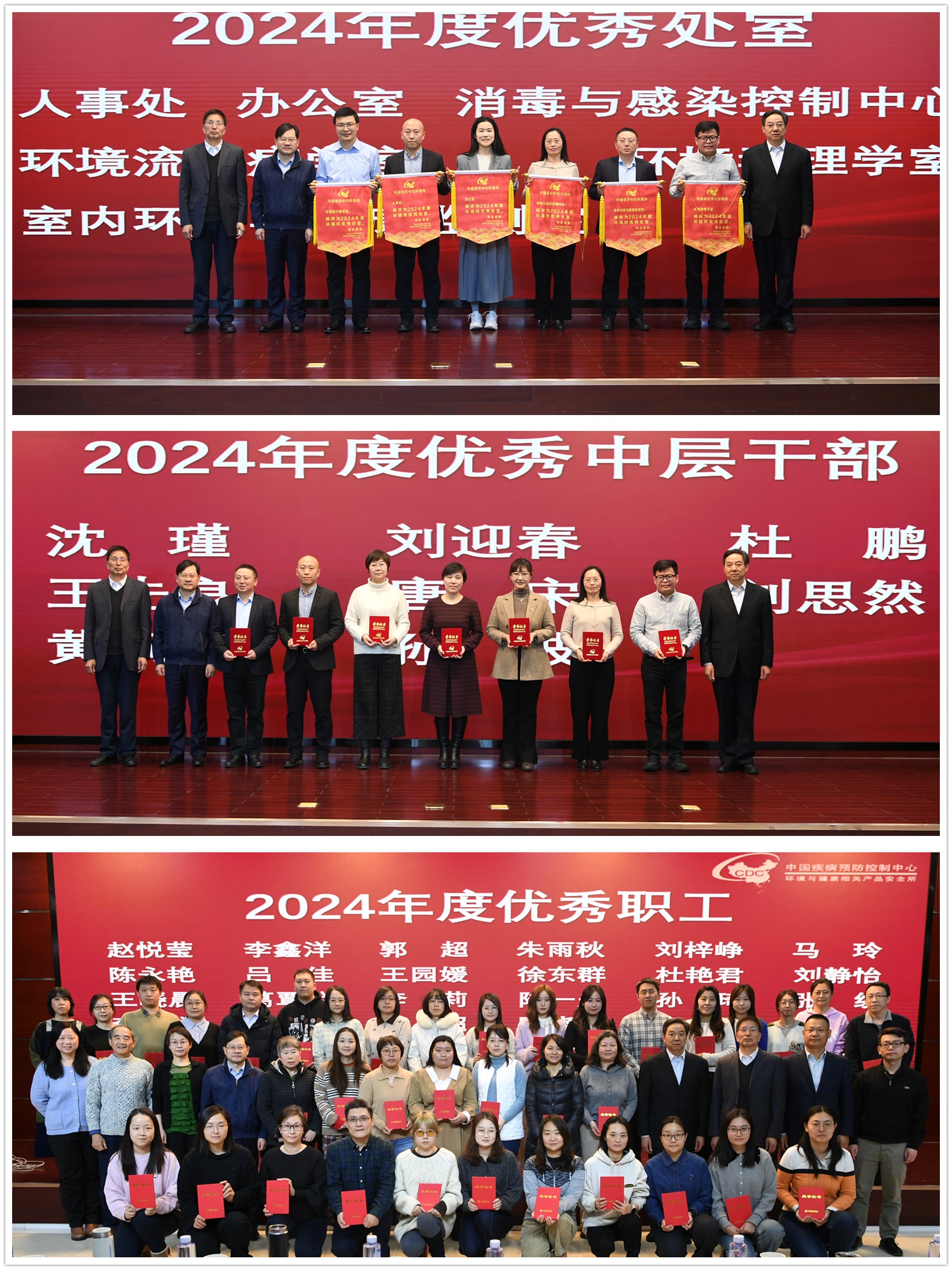 会上,王林所长作了题为“聚焦提升核心能力 为中国式现代化筑牢环境健康之基”的工作报告,详细回顾2024年的重点工作进展,并与AI技术结合,生动分享20条工作体会,剖析面临的机遇与挑战,指明2025年的工作方向和重点工作。党委书记姚孝元以“抓引领 促融合 提质效 以高质量党建推进环境健康事业高质量发展”为题,全面梳理2024年党建工作成效,分析问题短板,作出2025年党建工作部署。纪委书记聂武围绕“以勇于自我革命的精神 不断推进清廉环境建设”主题,对党风廉政建设开展廉洁提示,部署2025年廉政建设和纪检工作。各业务处室汇报了2024年未完成工作及2025年重点工作计划。会上还为2024年度优秀处室、优秀中层干部和优秀职工进行了颁奖。