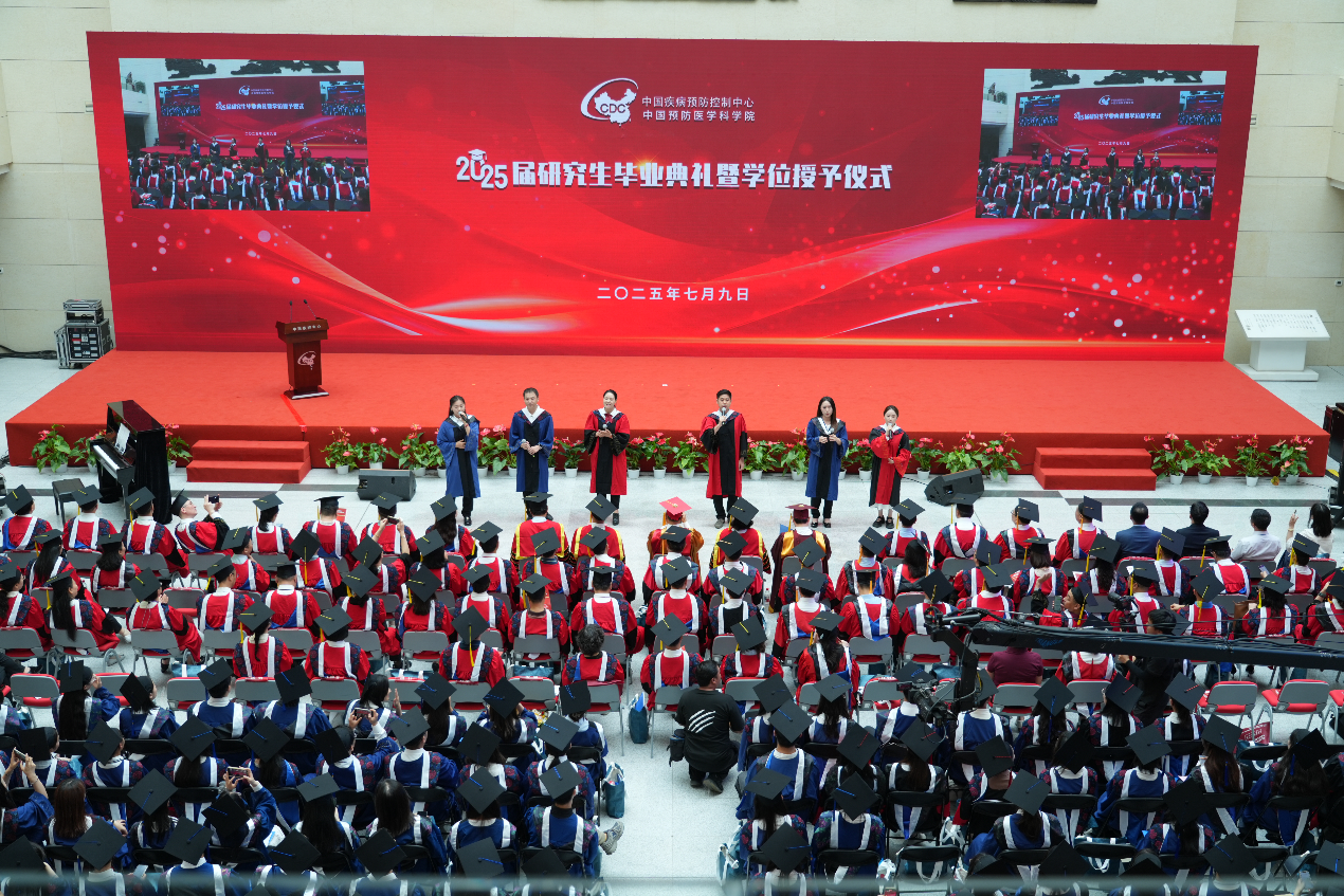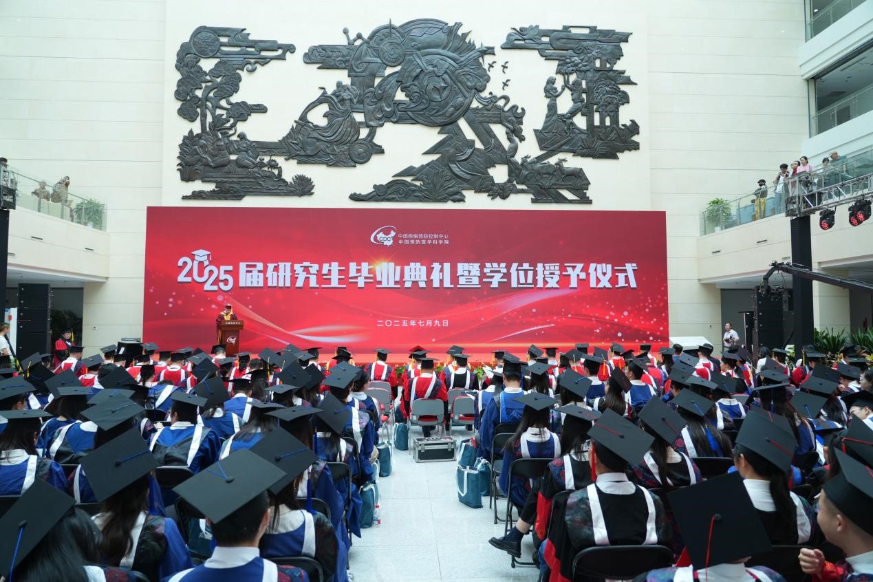 2025年7月9日, (中国预防医学科学院)2025届研究生毕业典礼暨学位授予仪式在北区举行。中心(院)主任(院长)、研究生院院长、学位评定委员会主席王健伟,中心(院)领导班子成员、学位评定委员会委员、各培养单位和总部处室领导、教师代表、校友代表、2025届全体毕业生及亲友代表共400余人出席典礼。典礼由中心(院)副主任(副院长)、研究生院执行院长施小明主持。