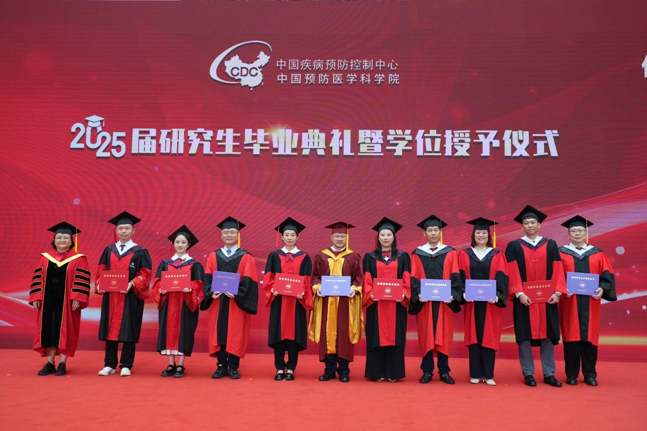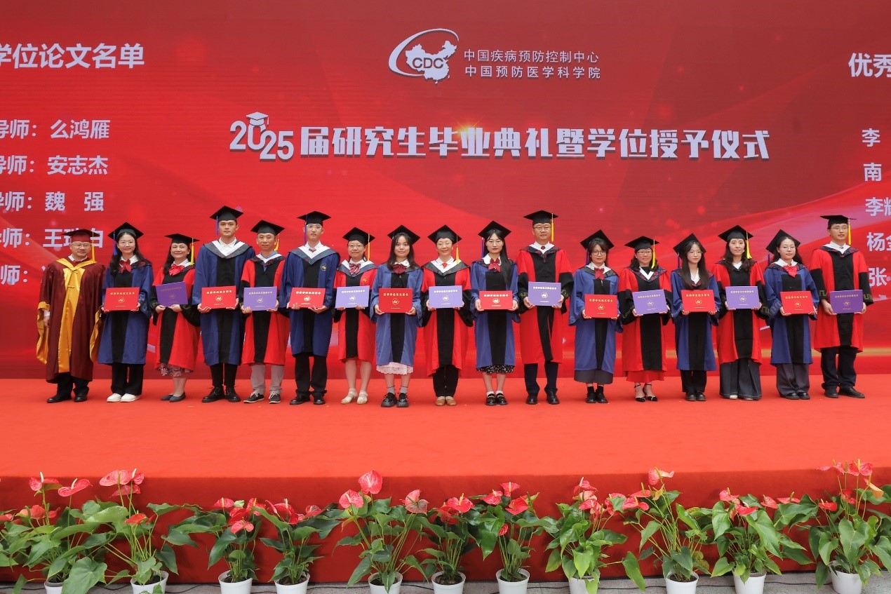 中心(院)主任(院长)、研究生院院长、学位评定委员会主席王健伟以“砥砺家国情怀 勇攀公卫高峰”为题致辞。他表示,同学们求学于疾控改革时代,成长于中国疾控中心,坚守在疾病防控前沿,书写了不平凡的青春篇章。他肯定同学们砥砺奋进,追求卓越,欣喜于同学们的科学素养日益精深,实践能力显著增强,家国情怀愈发深厚,为筑牢健康长城奠定了坚实基础。他寄语同学们要勇攀高峰,以鸿鹄之志做“国之大者”的践行者,以开拓创新做科技自强的破壁者,以实干之力做知行合一的奋斗者。希望大家以“不平凡”的志气、“砺精进”的锐气、“攀高峰”的勇气,在新征程中乘风破浪,再创非凡。