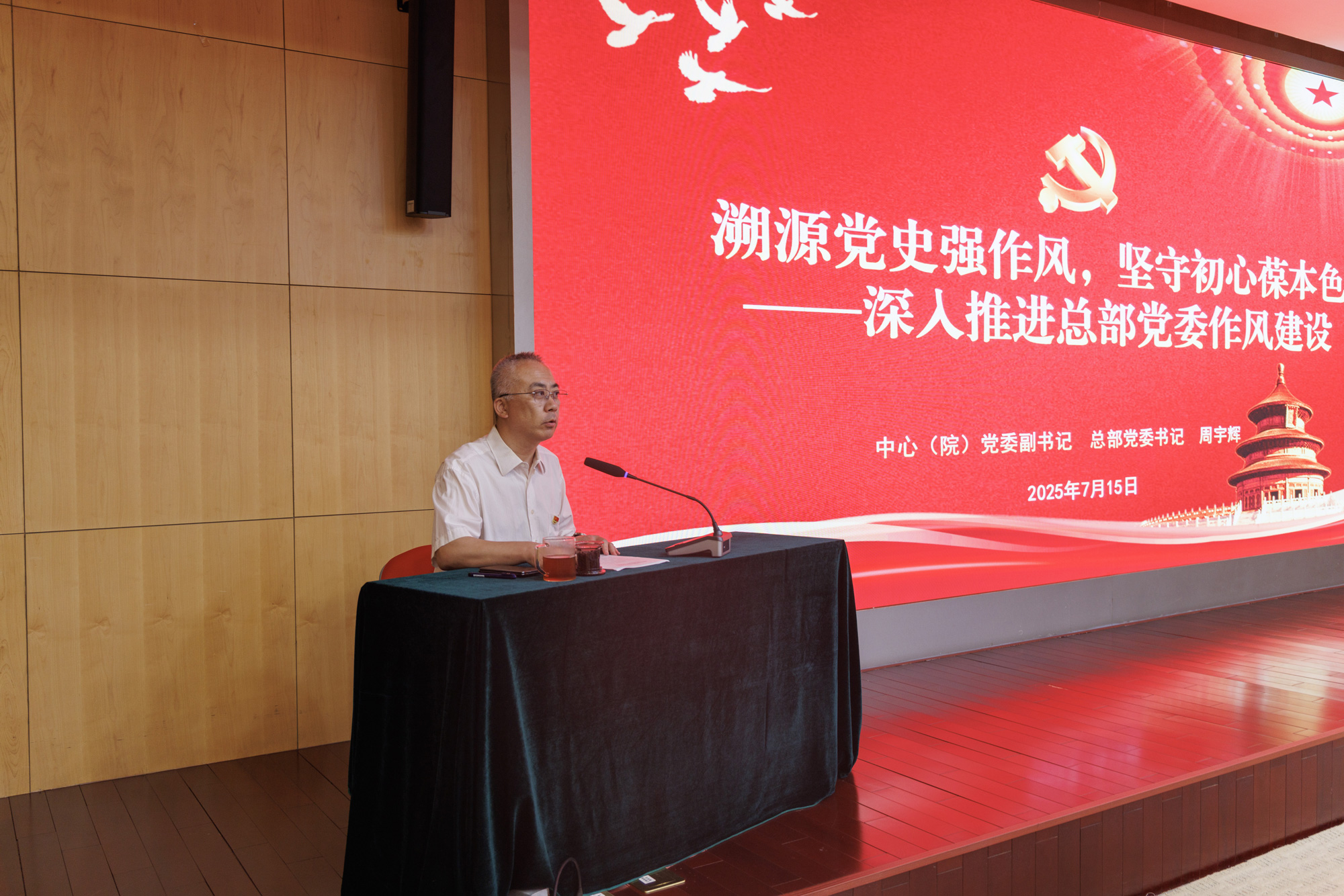 为庆祝中国共产党成立104周年,扎实推进深入贯彻中央八项规定精神学习教育,2025年7月15日下午,中心(院)总部党委举办“七一”主题党日暨书记讲党课活动,中心(院)党委副书记、总部党委书记周宇辉同志以《溯源党史强作风,坚守初心葆本色》为题讲授专题党课。